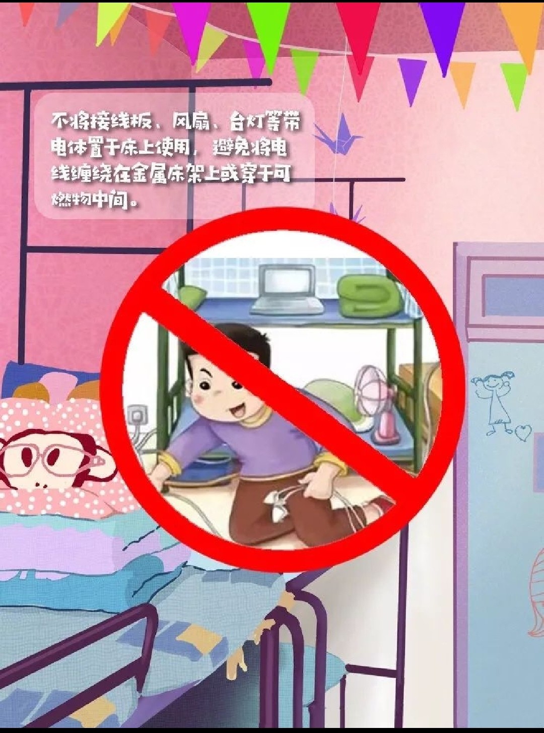 1、宿舍无人情况下必须切断所有电源,做到"人走断电",以免灯具和线路发热引起火灾。