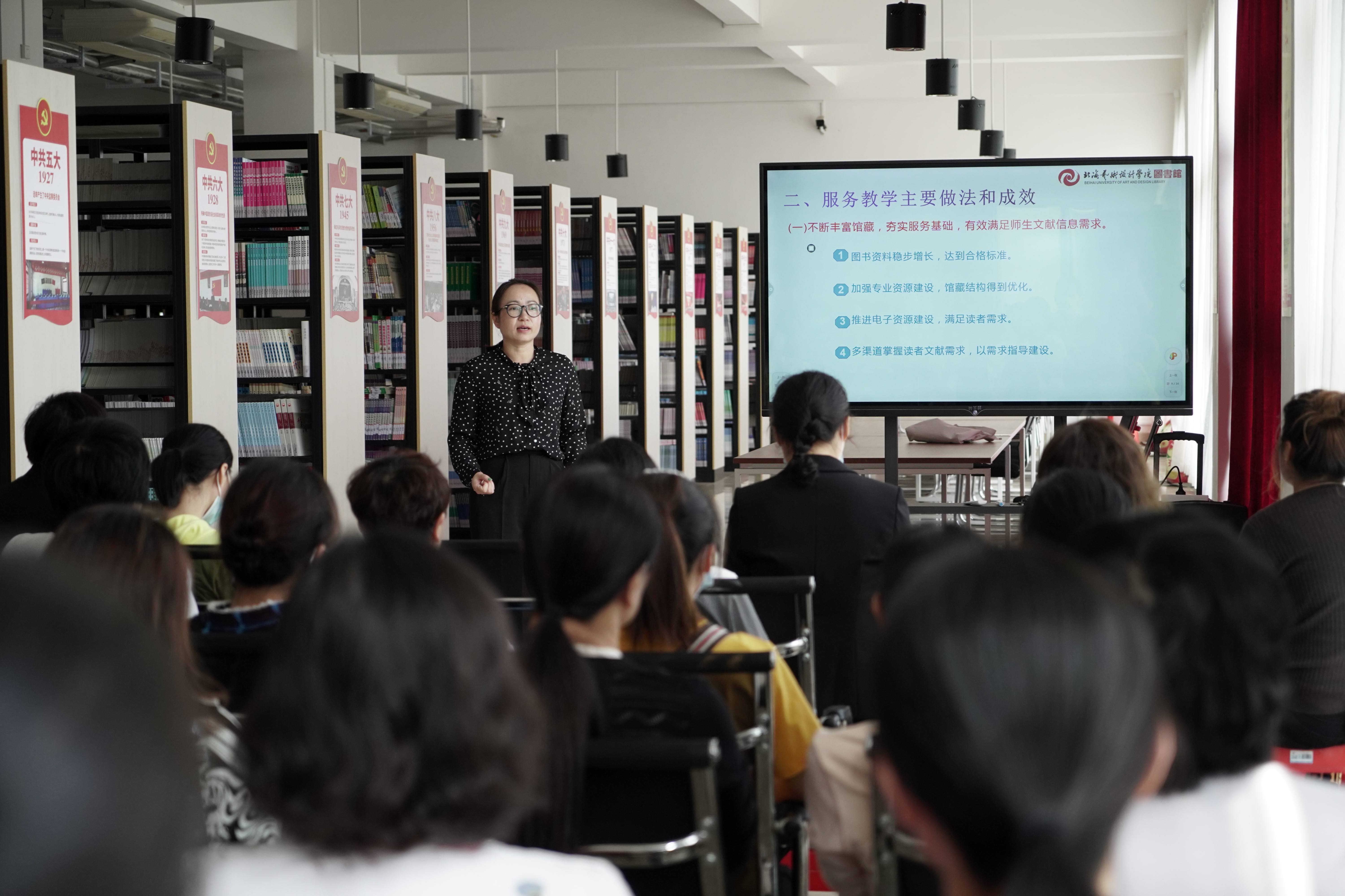 会议通过馆领导、各部室负责人讲解全馆工作全貌、现阶段工作重点以及下一步工作计划的方式让全体教职工更加清晰图书馆工作现状和工作重点,更加明确个人岗位职责,为评估做好准备。(苏林艳摄)