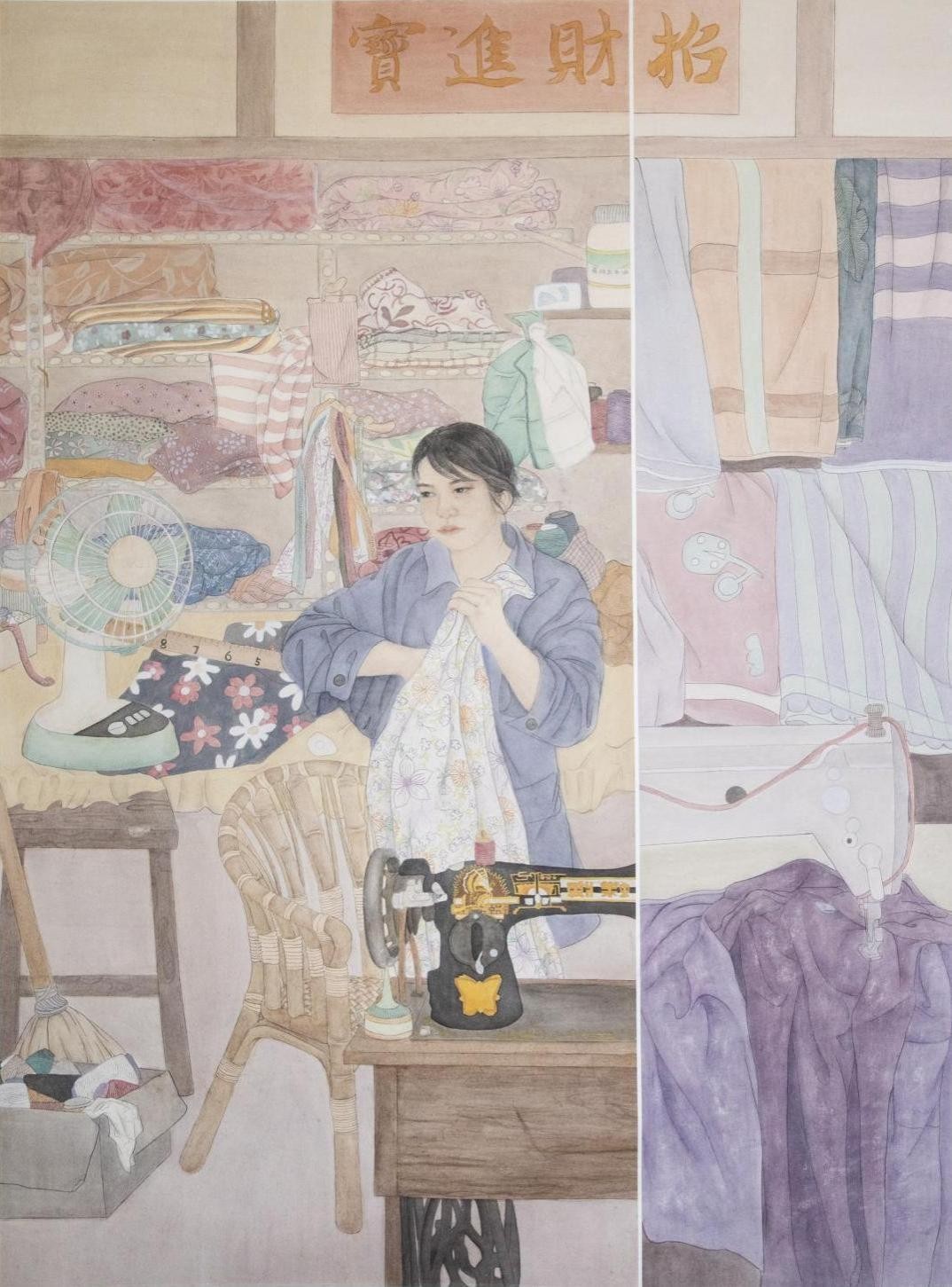 《岂曰无衣,与子同裳》 方温馨 纸本工笔重彩人物 119cm×190cm 2023年