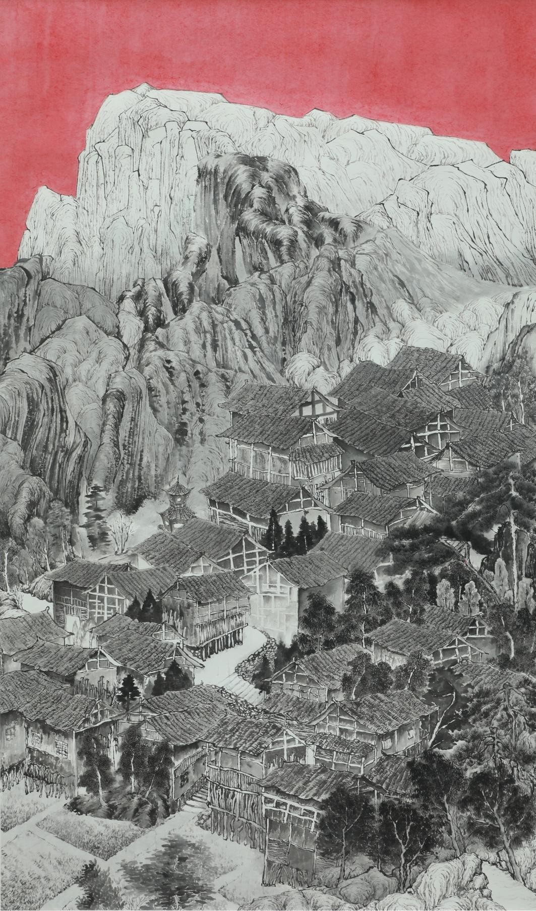 《山村晓韵》张雪 纸本 180cm×100cm 2023年
