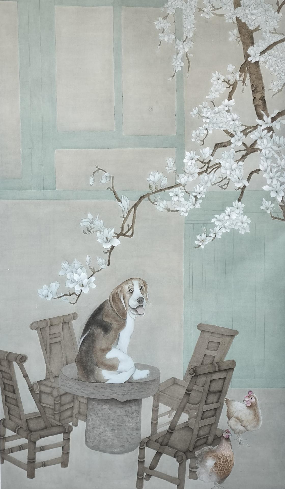 《蓁蓁·闲趣》 江铃铃 纸本设色190cmx105cm2023年