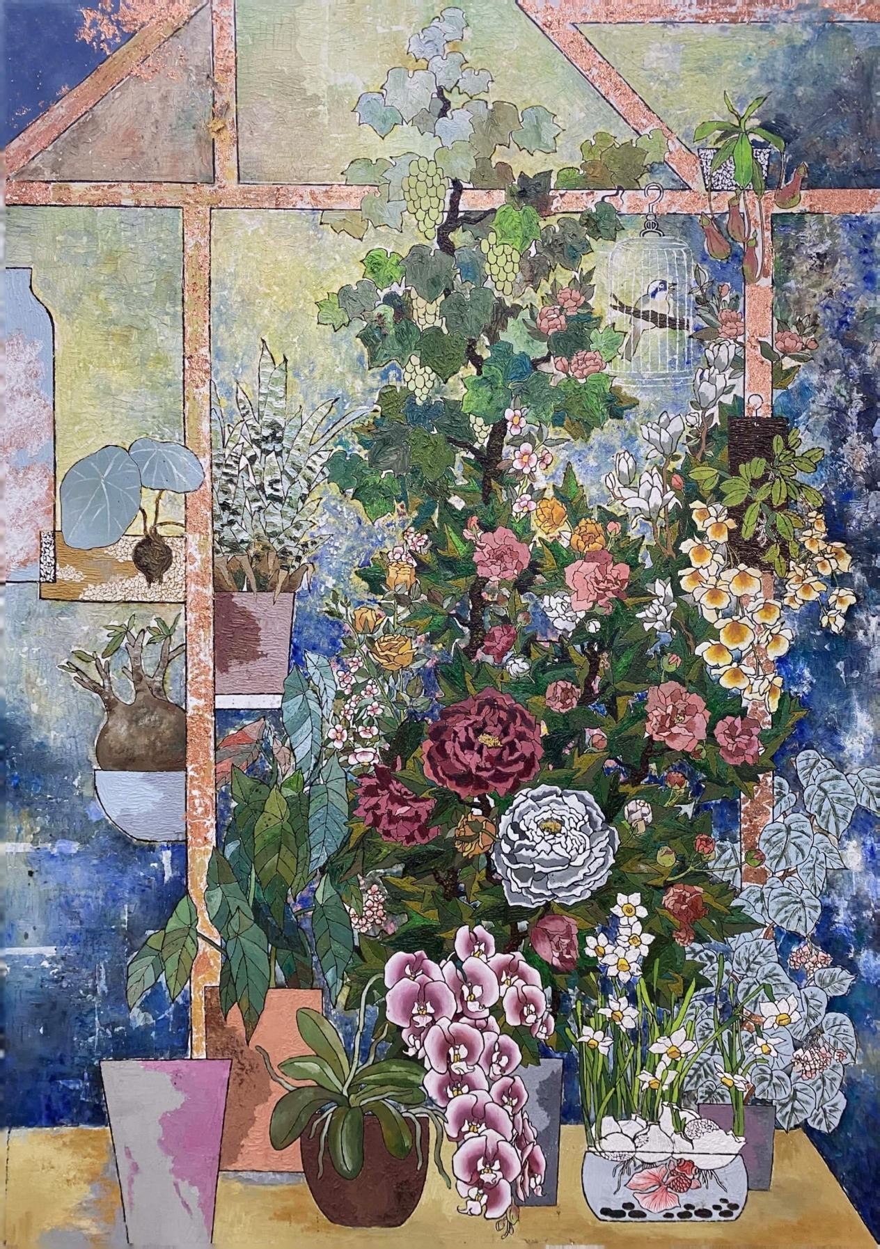《花觅》之梅花 柯钿钿岩彩 40cmX60cm 2023年