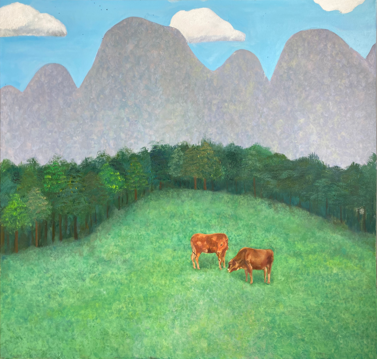 《长大》系列一朱玥满布面油画100cm×100cm2023年