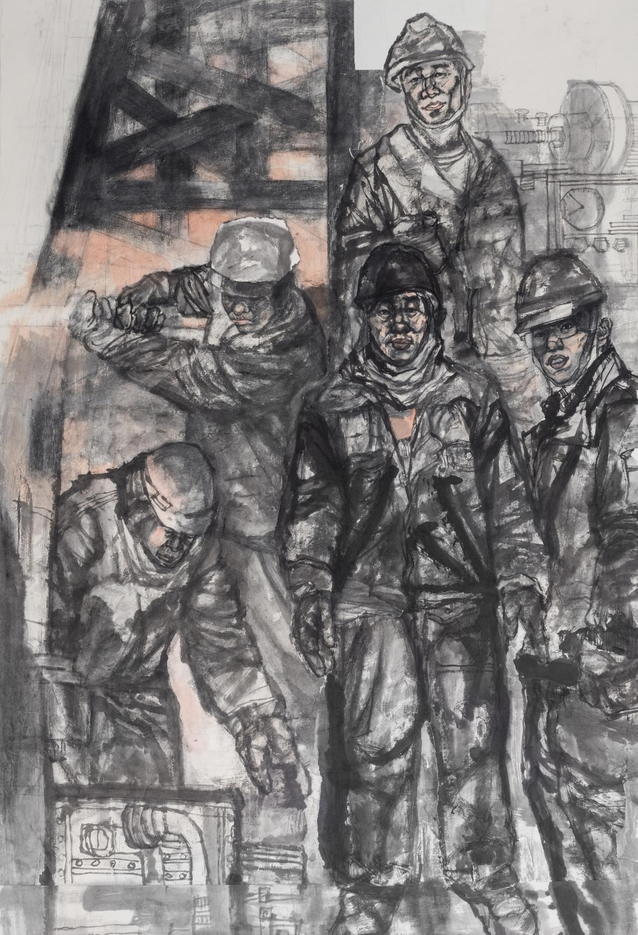 《大修班组》 魏文韬 纸本水墨210cmx170cm2023年
