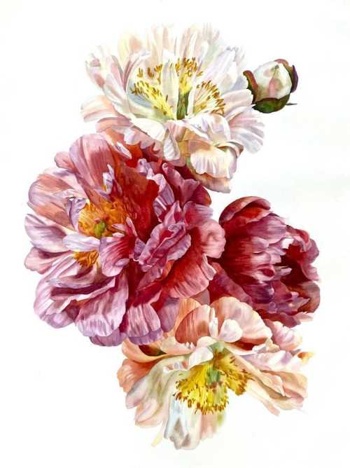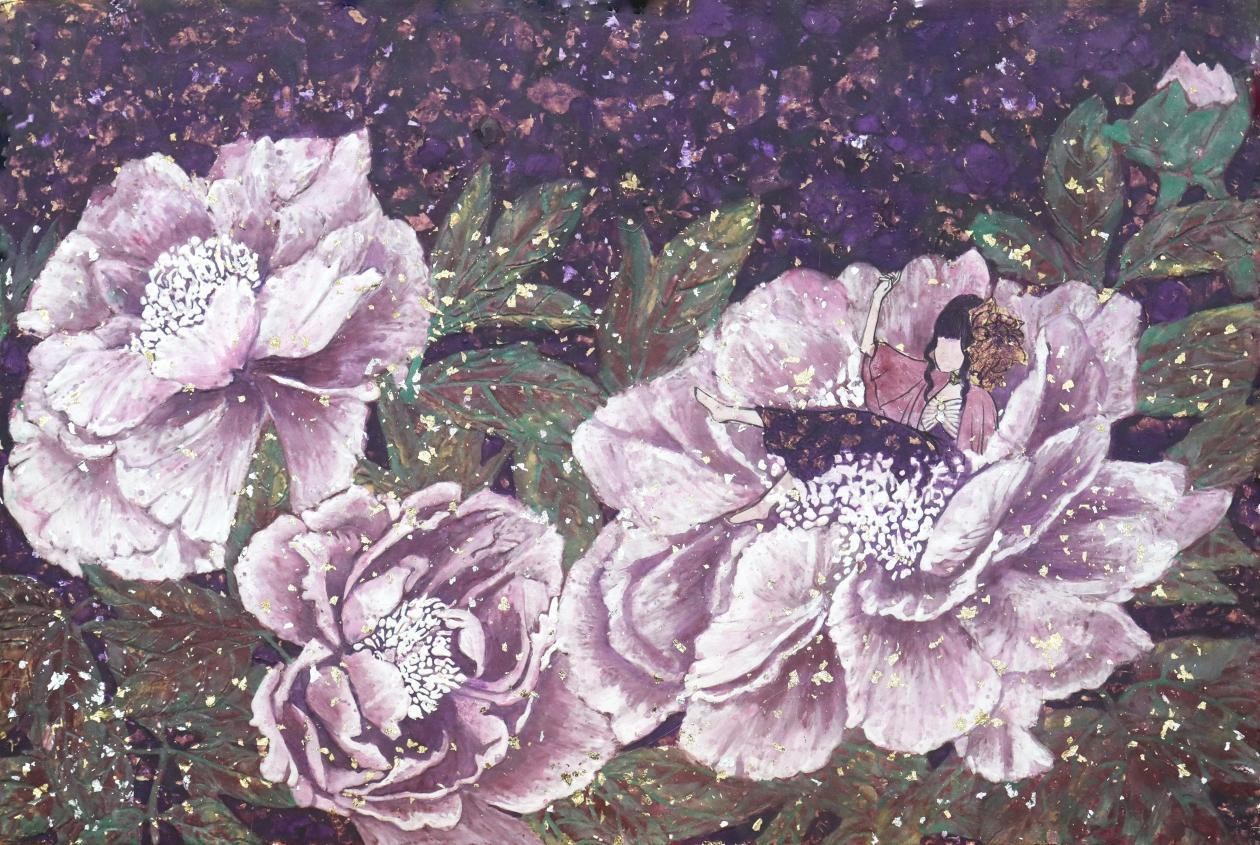 《花觅》之牡丹花 柯钿钿岩彩 40cmX60cm 2023年