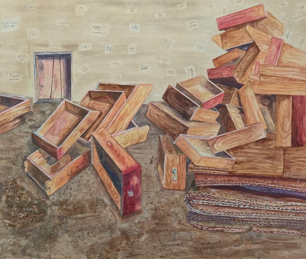 《堆叠》 徐妹丁 水彩+综合材料 100cm×90cm 2023年