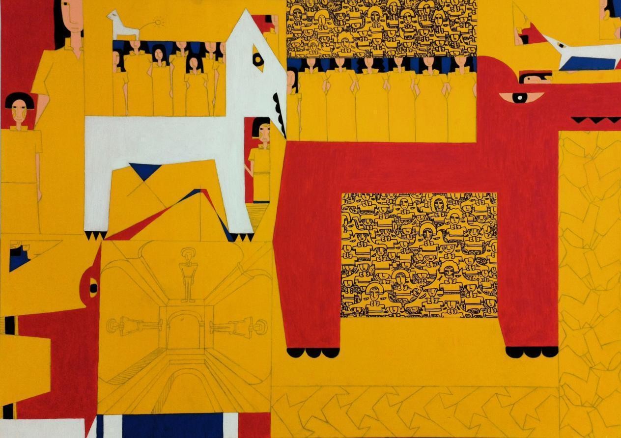 2.弘扬民族文化,为唤醒民族自信、自尊做出努力。我们可以看到不少作品中洋溢着对于传统文化的喜爱,用京剧人物、传统器皿、传统医学、古建风貌等题材来呈现他们对于传统文化的理解,并用一种新颖的语言方式来引发人们对于这些“家珍”的兴趣和重新思考。