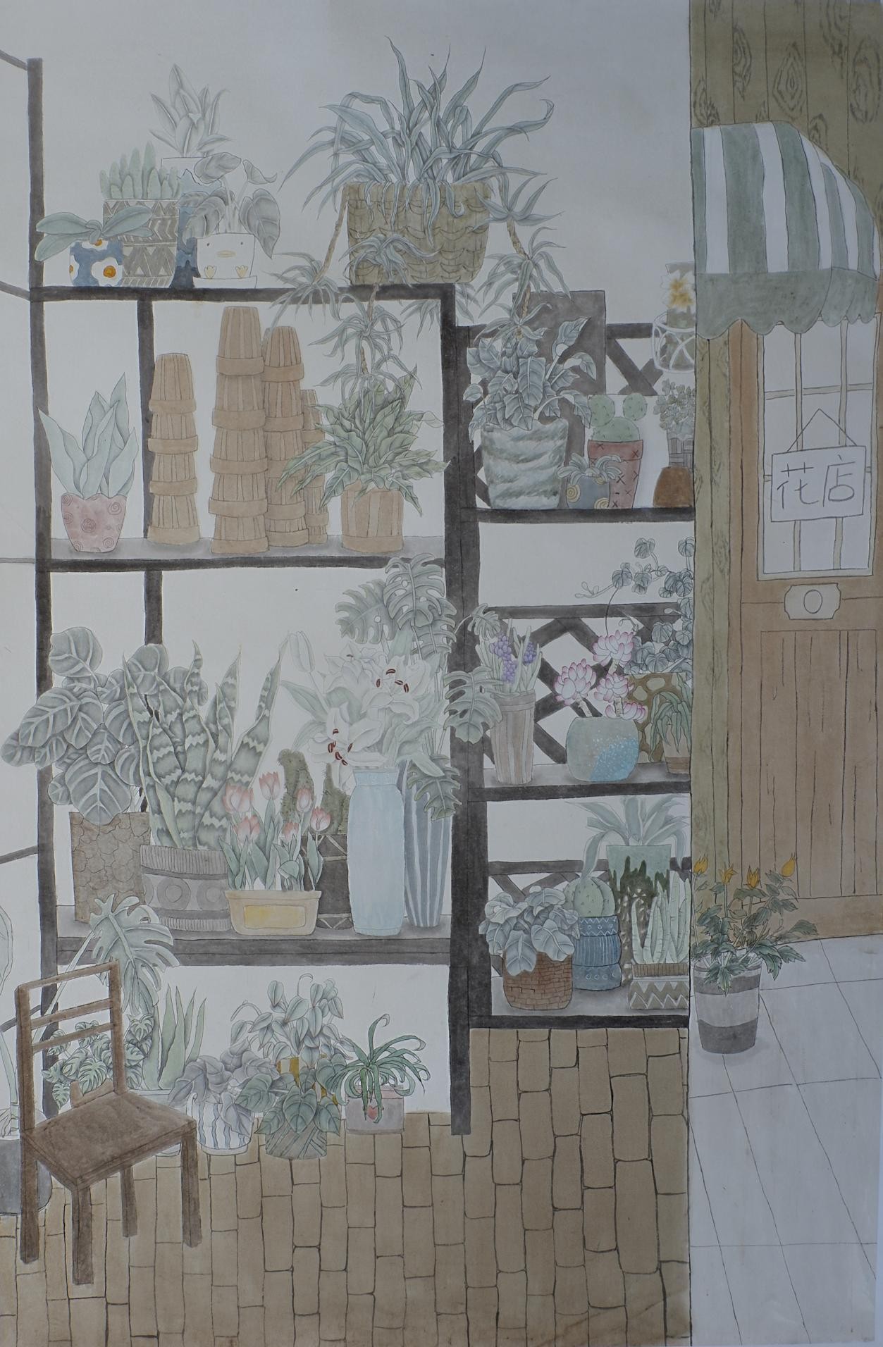 《菜场一角》 张乔乔 工笔花鸟120cm×185cm 2023年