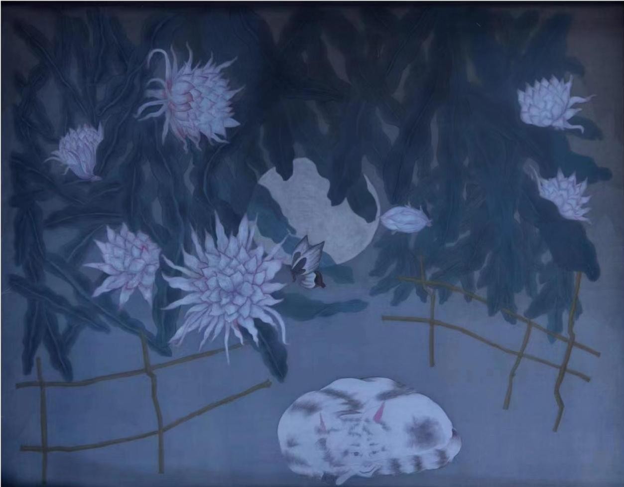 《一现之美》 张佳敏 绢本重彩 140cm×110cm 2023年