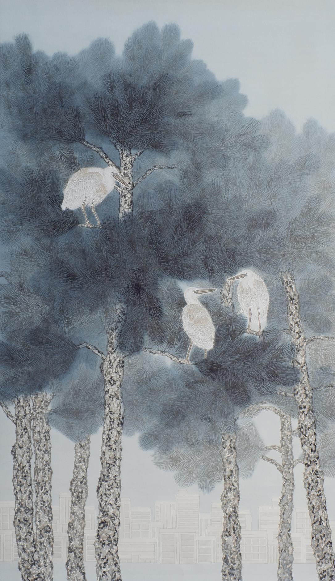 《鹭之栖》 谭熙工笔花鸟105cm×180cm 2023年