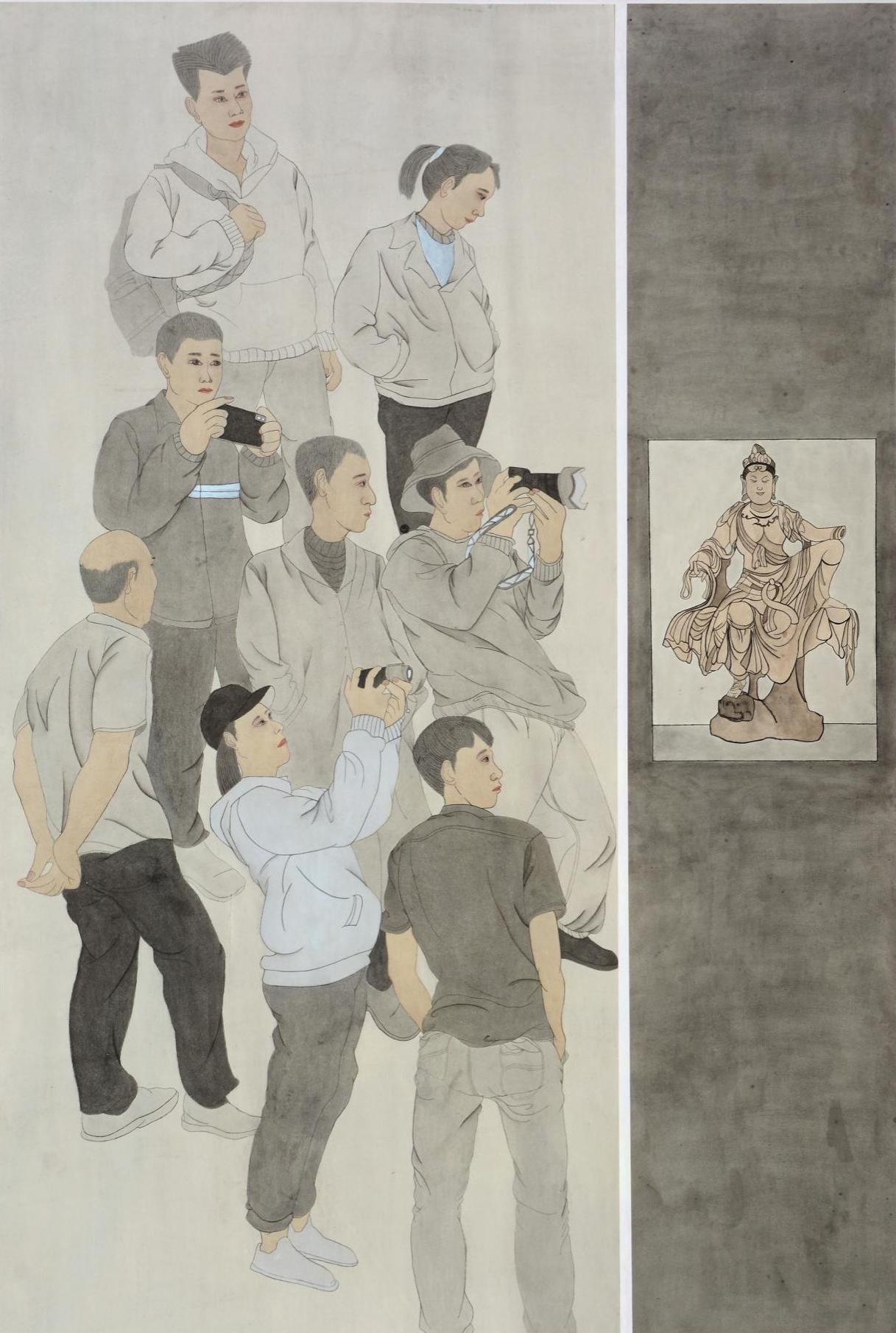《观展》 肖鸿石 纸本180cmx110cm2023年