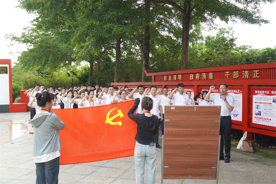 为进一步加强党风廉政建设,筑牢拒腐防变思想防线,推动我校廉政文化建设向纵深发展,我校于6月21日上午在园博园碧海清风园组织开展了以“党纪学习教育,廉政教育活动”为主题的系列教育活动。学校党委书记覃宪儒、纪委书记王照伟以及各党总支书记、党员同志参加活动。