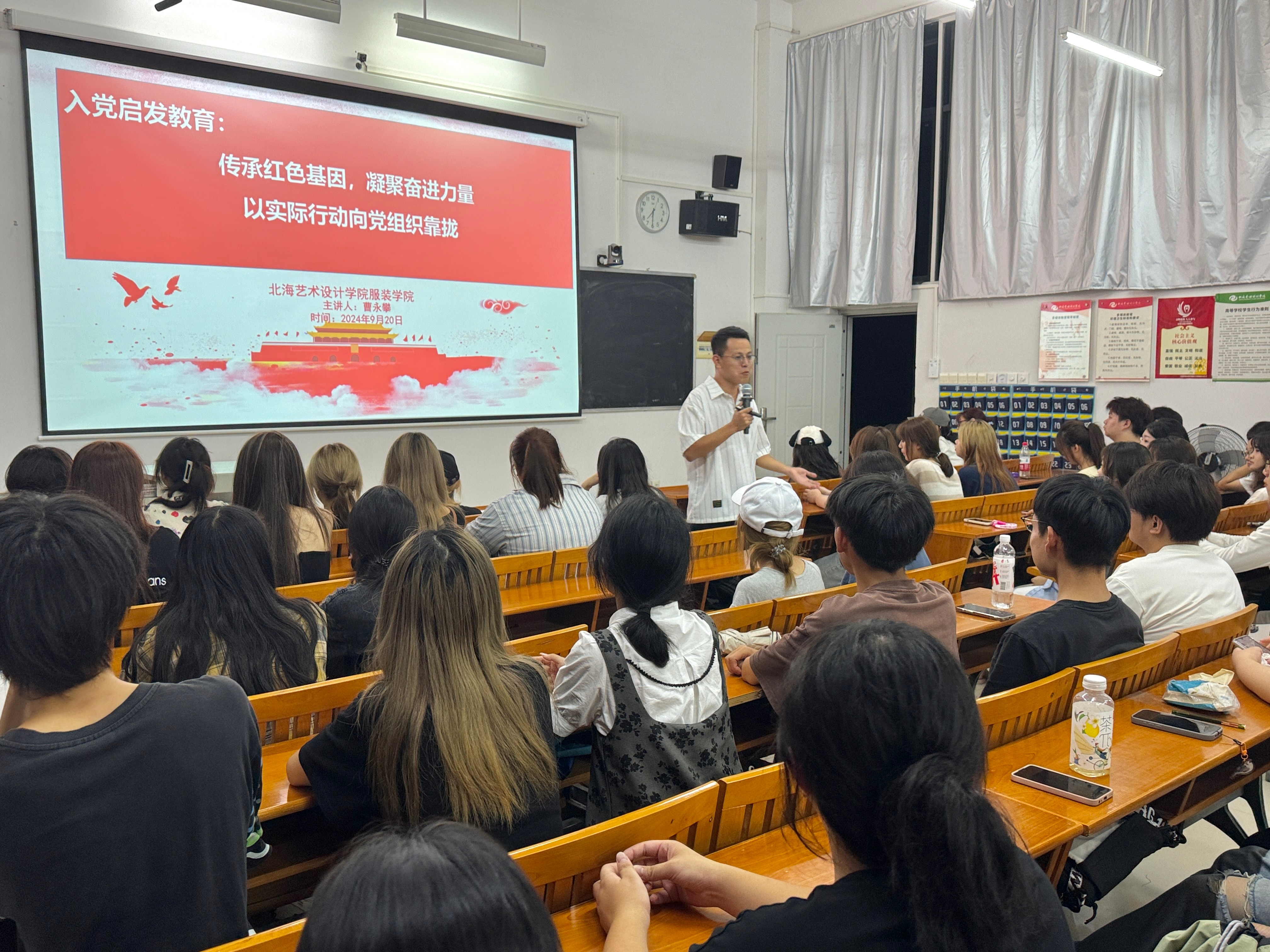 为加强新生对党的认识,帮助他们理解党的基本理论、路线和方针政策,坚定对马克思主义和共产主义的信仰,严格以党员标准要求自己,帮助有入党意愿的同学端正入党动机,争取早日加入中国共产党,服装学院党支部开展了2024级新生入党启蒙教育活动,此次讲座由学院党支部书记曹永攀主讲,内容涵盖了了解党的百年历程、弘扬伟大建党精神、学习党的基本知识、如何撰写入党申请书、如何以实际行动争取早日入党以及让青春奋斗与民族振兴同频共振六个部分,为新生们提供了一次全面而深刻的党性教育。
