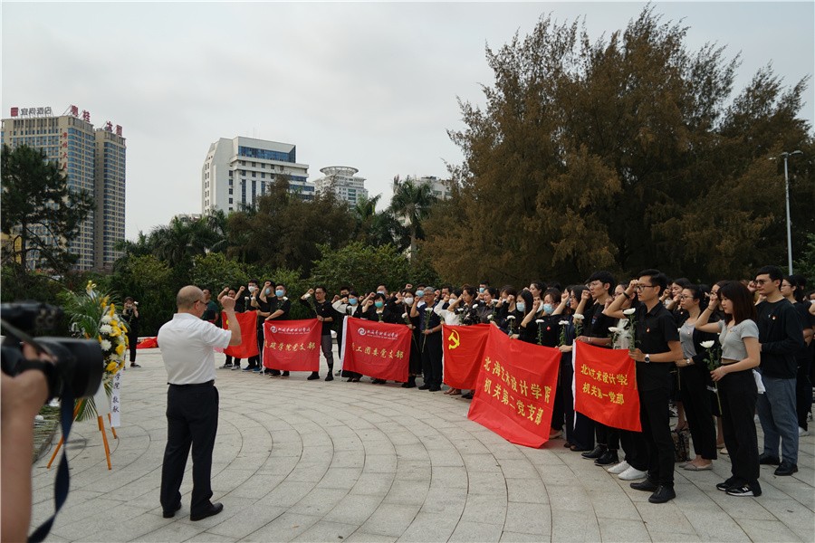 学校党委书记李高南讲话中指出,曾经的无数先烈用生命换来现在的幸福生活,他们的精神值得我们永远景仰和学习,我们要在习近平新时代中国特色社会主义思想指引下,认真贯彻落实党的十九届五中全会精神,为社会主义现代化建设不懈努力。烈士忠魂千秋在,革命精神代代传。今天的北海,正处于历史上最好的发展时期,今日在此纪念、缅怀先烈,我们将继承先烈遗志,时刻铭记历史使命,勇接社会主义现代化建设的接力棒,发扬革命传统和精神,团结奋斗,开拓创新,为社会主义现代化建设做出积极贡献。