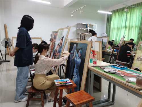 “画”:美术学院发动全体师生,发挥自身专长,寻访红色印记,开展艺术创作,用百幅美术作品来“画说党史”。现今他们正在抓紧创作,“秋收起义”“开国大典”“汶川地震灾后重建”“新冠抗疫”……一幅幅素描、水粉、油画、彩铅画已摆满了专业教室。以画为体,以史为魂,师生们用手中的画笔表达对中国共产党百年光辉历程的敬仰之情。学院将在6月下旬举办“丰功伟业,彪炳千秋”——迎“建党100周年”相关主题展览。