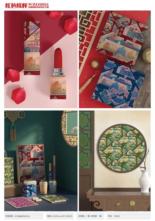 “红色纹样”是WZD2021纹藏国际纹样设计大赛的主题。纹藏国际纹样设计大赛迄今为第二届大赛,首届WZD以“纹明”为主题,共收到了近二十个国家的参赛者投送的2586件作品,在国际评委团经多轮严格筛评,共有145位入围,入围率为5.6%。最终激烈地评审中,角逐出金银铜全场大奖。赛事和作品受到国内外社会和媒体的广泛关注,取得了不菲的社会影响力,做到了让中国纹样“潮”起来和“走”出去。WZD2021(第二届)纹藏国际纹样设计大赛将继续秉承“纹化自信”的理念,以“红色纹样”为题,将中国精神、中国文化与中国生活方式、中国设计融合一起,做具有历史传承和时代精神的纹样传播者。