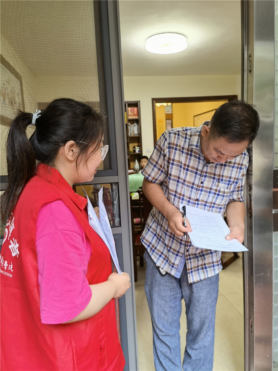 本次志愿服务活动分为三个小组进行,志愿者向小区居民住户发放创城宣传资料和调查问卷,耐心向小区住户宣传和讲解创城工作的意义和重要性等知识等,并指导小区居民填写问卷调查内容。本次活动共发放不回收创城应知应会资料60份,发放并回收创城测评入户调查问卷50份。
