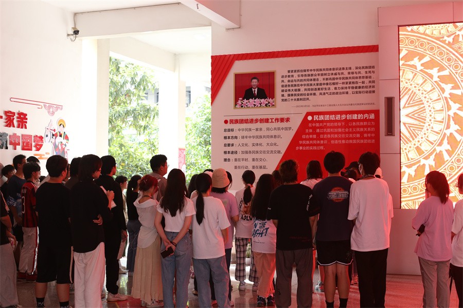 润德于心,活动育人。结合建党100周年、十九届六中全会、建团100周年、党的二十大召开等重大时间节点,组织开展观看大会现场直播、大会精神宣讲报告会、打卡红色教育基地、“将《红色传奇》进行到底”、知识竞答等系列主题突出、内容丰富的活动,强化活动正向引领,弘扬青春正能量。持续抓好民族团结进步教育,组织开展“醉美民族风 八桂嘉年华”游园活动、 “我们的节日”传统民俗体验活动等,加强各民族交往交流交融,铸牢中华民族共同体意识。