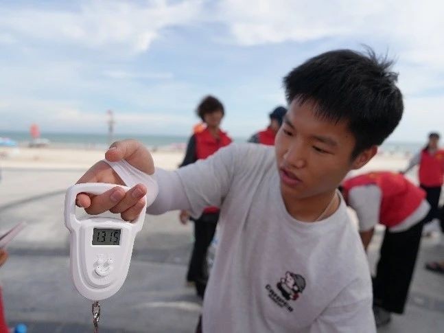 经过一个小时的奋战,沙滩再次焕发出勃勃生机。各小组带着“战果”汇聚,对垃圾进行统一称重。这些“战利品”不仅见证了志愿者们的辛勤付出,更点燃了志愿者持续保护生态环境的信念与决心。志愿者们以身作则,呼吁每个人做地球的守护者,做环保理念的践行者,让环保意识在全社会蔚然成风。