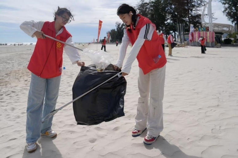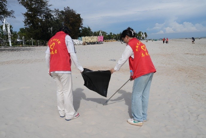 为深入贯彻习近平生态文明思想,践行“绿水青山就是金山银山”的理念,引导广大师生树立“保护海洋、人人有责”的环保意识, 近日,我校团委青年志愿者协会组织五十余名志愿者前往北海银滩开展“守护蔚蓝海岸,共筑美丽沙滩”清洁志愿服务活动。此次活动累计清理海滩垃圾约25公斤。