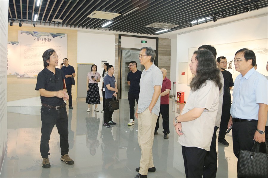 参观广西艺术学院师生创作的中国画百米长卷《八桂壮美锦绣图》