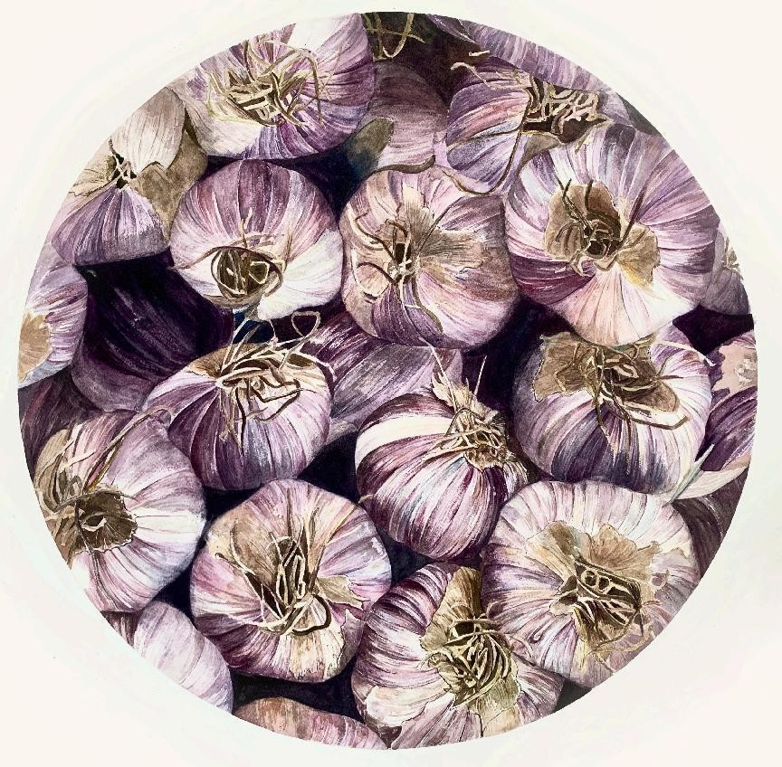 绘画 1906 班 林雯清《蒜你狠》55×55cm 水彩 指导教师:刘广滨、郭珂