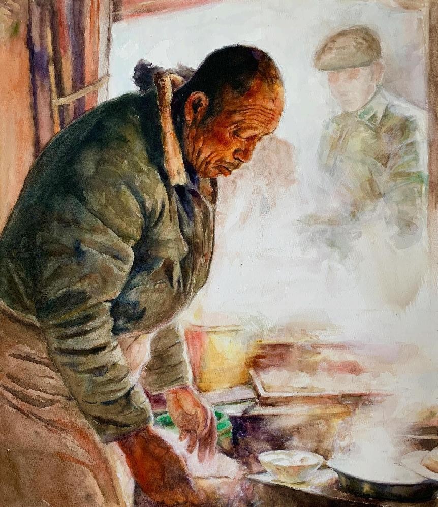 绘画 1906 班 谭波《父亲的故事》108×76cm 水彩 指导教师:刘广滨、郭珂