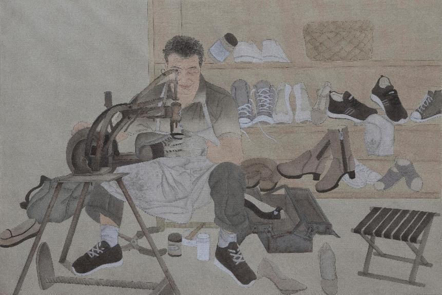 绘画 1901 班 刘清清《匠人》85×123cm 工笔重彩 指导教师:熊晓翠