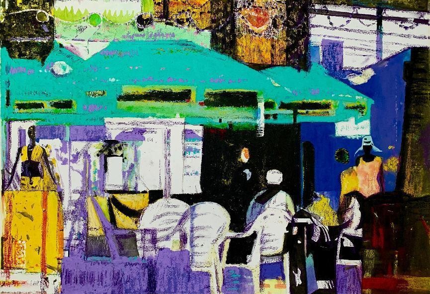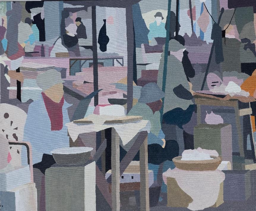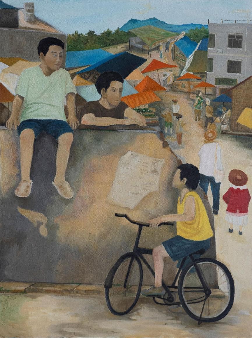 绘画 1903 班 薛丰宝《村市》100×120cm 布面油画 指导教师:袁志伟