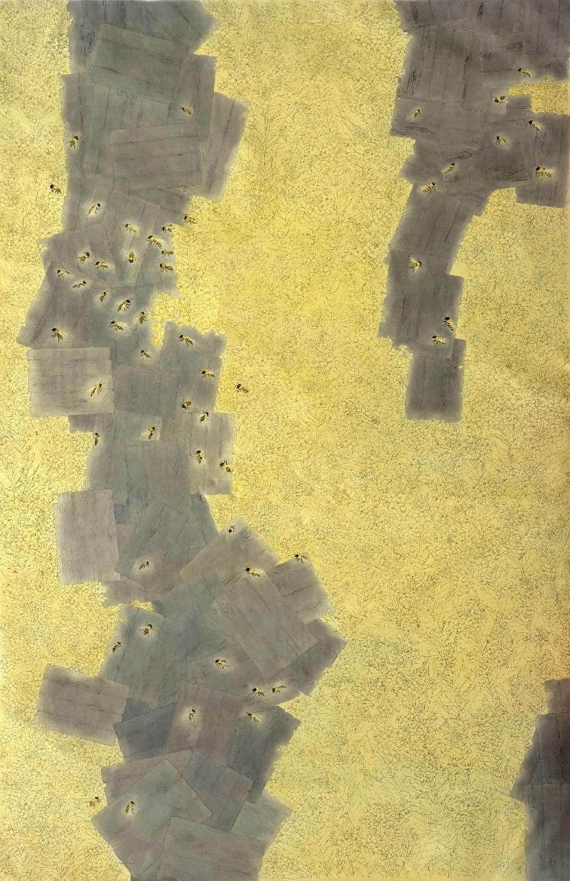 绘画 1902 班 胡佳然《蜂舞花田间》210×140cm 工笔重彩 指导教师:陈建江