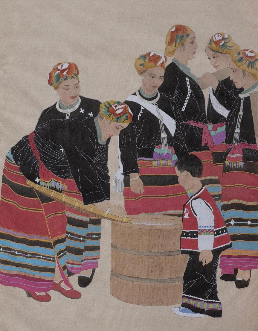 绘画 1906 班 麻镇显《红瑶晒衣节》76×76cm 水彩 指导教师:刘广滨、段凝