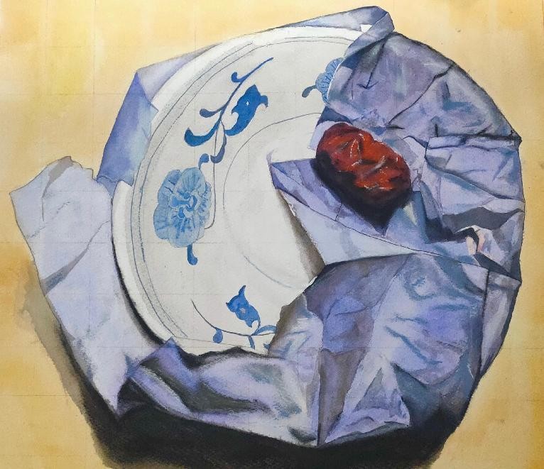 绘画 1906 班 张玉龙《枣花盘》53×53cm 水彩 指导教师:段凝