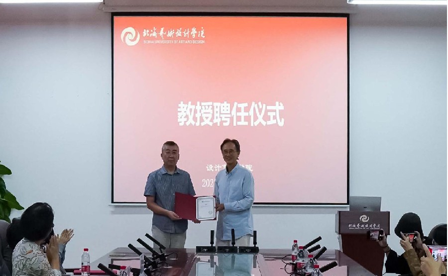 10月11日下午,北海艺术设计学院在西校区图书馆五楼会议室举行外聘教授聘任仪式。校长卢新华参加了颁发仪式,并为受聘教授颁发聘书。设计艺术学院副院长赵明主持,人事处副处长胡,设计艺术学院院长李林平、副院长白建强、设计艺术学院服装设计教研室副主任廖汀、副主任郭单园、设计艺术学院实验室副主任江柳清以及服装设计教研室全体教职工出席聘任仪式。