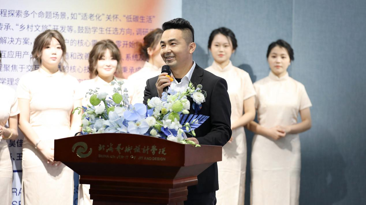 随后,学生代表李钦上台发言。她满怀激情地分享了自己在《信息可视化设计》课程中的学习经历。李钦提到,这门课程让她学会了如何将复杂的数据转化为直观、美观的图形,让数据“说话”。这个过程不仅锻炼了他的逻辑思维和创意能力,更让她深刻体会到数字媒体艺术在信息传播中的巨大潜力。