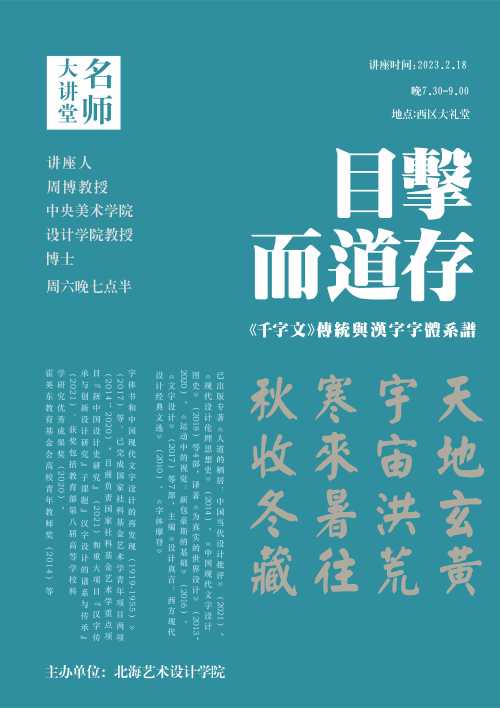 在中国的汉字艺术传统中,南朝梁武帝时期诞生的传统蒙学经典《千字文》,从其诞生之日起就与中国的文字、书法和字体产生了不解之缘。在过去1500多年的时间里,历代书家争相竞写《千字文》流传后世,形成了一个文字艺术的大传统,即所谓“千字文现象”,后世集字、改编更是不胜枚举。值得注意的是,《千字文》从一开始就与汉字“诸体”的概念相关,从早期的真、草二体,后来逐渐演化出四体、六体、十体乃至百体的字书系谱。这种“目击而道存”的诸体千字文现象成为汉字字体谱系的一道独特风景,并对日本江户时代之后的书体和图案文字创作观念产生了深远的影响。围绕《千字文》这一中国文字艺术的千年文脉展开教学、研究和创作,对于字体设计建立起汉字的书写传统与文字设计的感性关系大有裨益,也对信息技术条件下的汉字字体系谱的设计研究颇具启发。