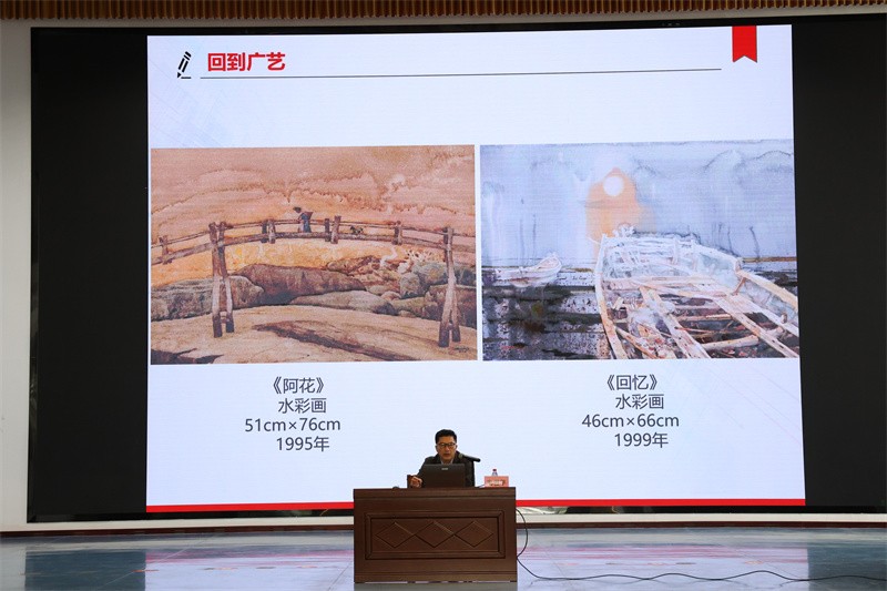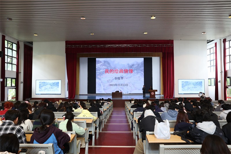11月13日,广西艺术学院韦俊平教授应邀于我校西校区大礼堂,为广大师生开展了一场专题为《我的绘画情缘》的精彩讲座。