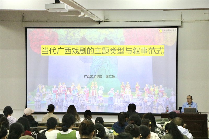 11月28日,广西艺术学院博士生导师谢仁敏教授在我校西校区伦理楼107开展题为《当代广西戏剧的主题类型与叙事范式》的精彩讲座。