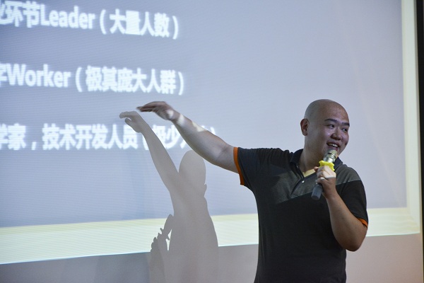 随后,黄秋源导演用幽默风趣的语言调动了全场的气氛。他指出,目前同学们对导演普遍存在误区。他先介绍了影视制作团队内部人员的职位分工,然后指出导演是一部影视作品的组织者和领导者,是搬运工,也是创造者,一部影片的质量与导演的素质和修养密不可分。
