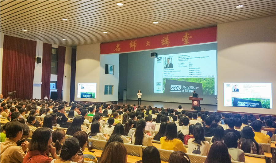 2019年9月16日(星期一)晚上7点30分于我校西校区大礼堂,英国德比大学艺术学院常务院长大卫·麦葛威(DAVID McGRAVIE)受邀到我校作一场题为《在英国艺术设计的画廊中驰骋》的讲座,现场座无虚席。本次讲座由胡胜副校长主持。