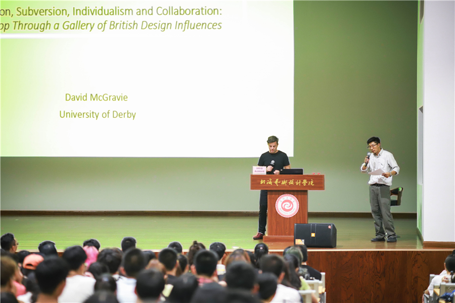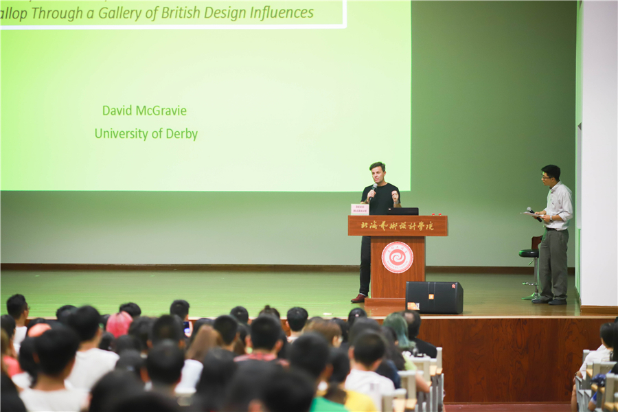 讲座开始时,大卫.麦葛威院长表示,他将介绍英国的艺术设计是如何将传统和现代以及工业化有机融合,也希望通过讲座能让同学们获得与自己专业相关的内容,对未来研究的方向有所启迪。