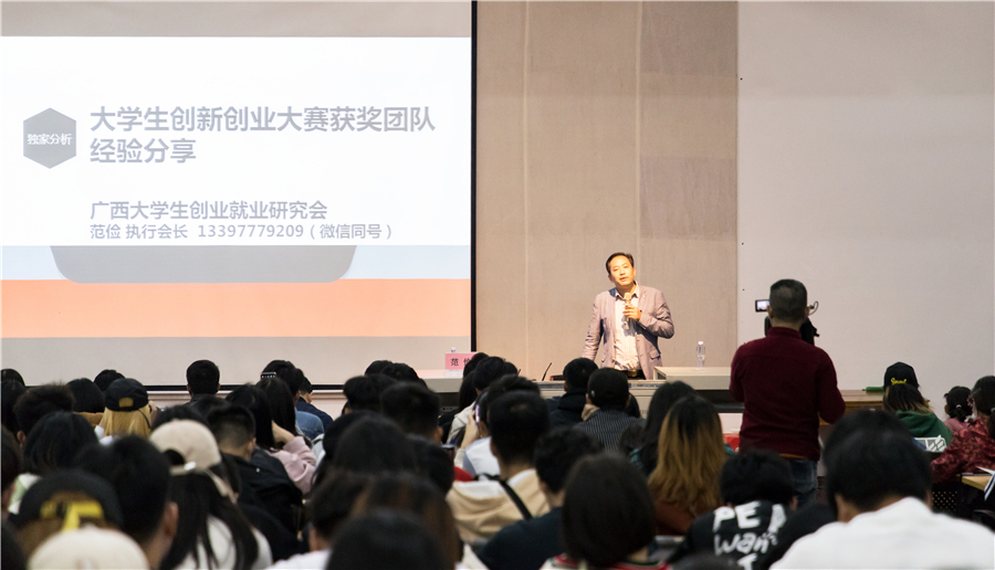 名师大讲堂||广西大学生创业就业研究会会长范俭莅临我校讲座《大学生创新创业大赛获奖团队经验分享》