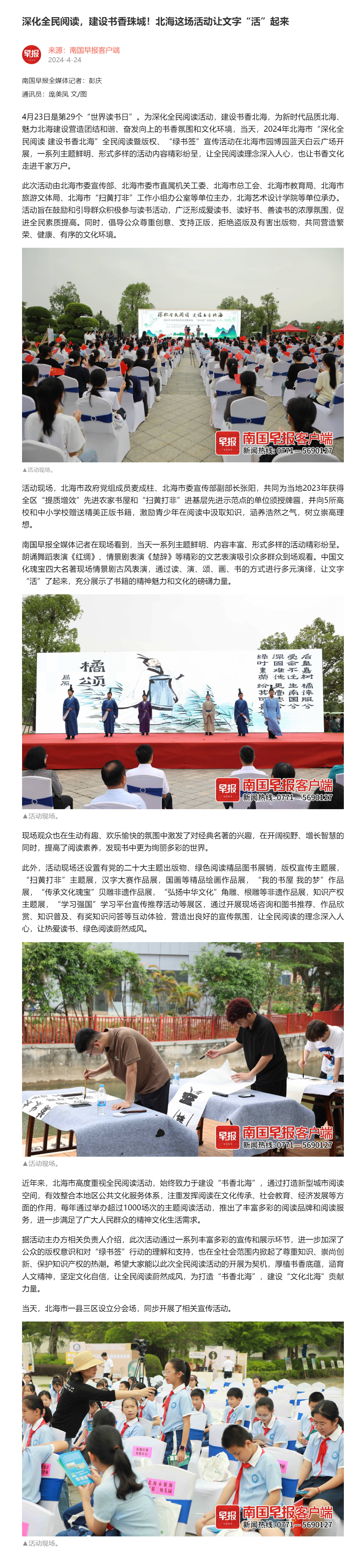 南国早报:深化全民阅读,建设书香珠城!北海这场活动让文字“活”起来