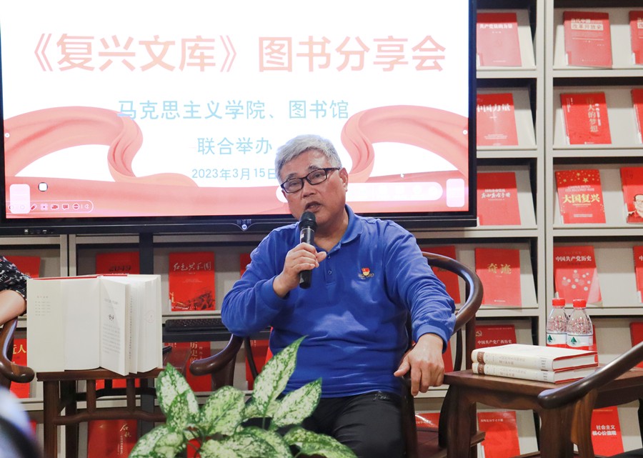 3月15日晚,由马克思主义学院、图书馆主办,校团委协办的《复兴文库》图书分享会在我校西校区图书馆“红色阅读角”成功举办。