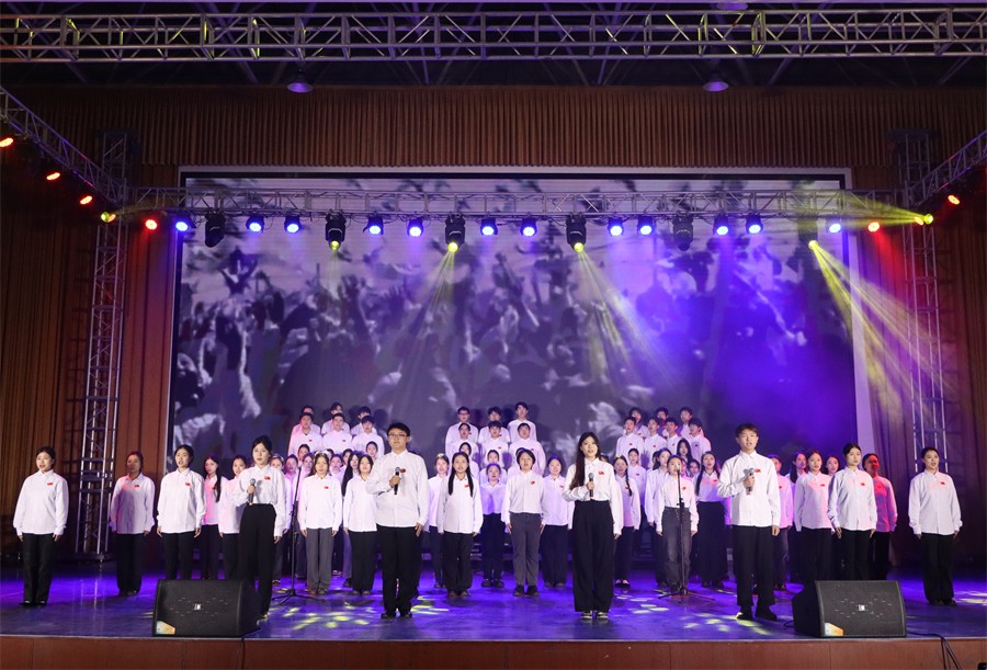 接着,学生们演出了一批红色主题节目:合唱《太行山上》、舞台剧《红绸》、舞蹈《风筝》《雨花石的等待》《离开雷锋的日子》《永不消逝的花》、朗诵《沁园春·长沙/沁园春·雪》《毛主席的光辉照万代》《为有牺牲多壮志》精彩上演,全场师生在享受艺术美的同时,潜移默化中接受了红色精神的洗礼。