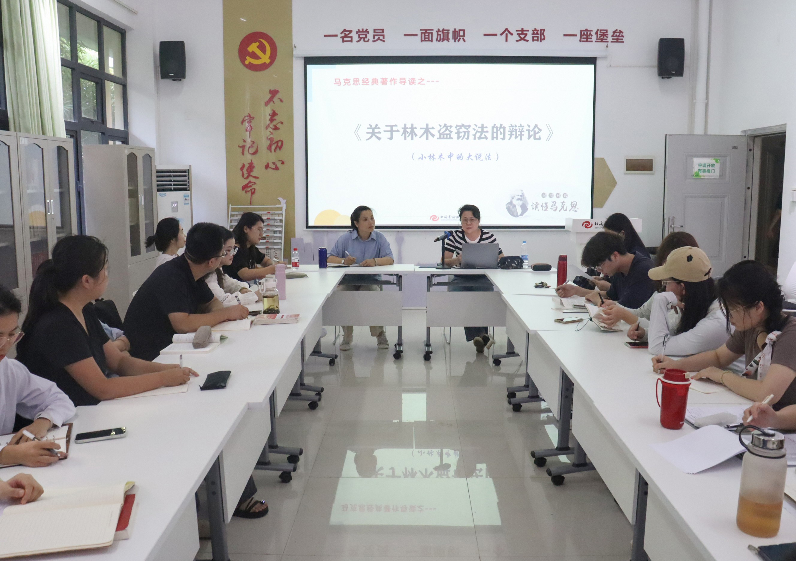 11月15日下午15:00,马克思主义经典著作导读系列活动第六讲在西校区行政楼103成功举行,由伍琼中副教授主讲《关于林木盗窃法的辩论》,我院副院长罗秋梅主持,学院全体中青年教师参加。