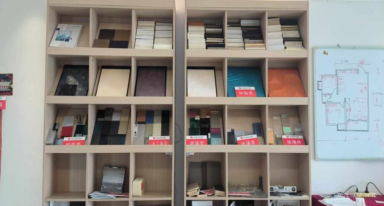 建筑与环境艺术学院装饰材料与构造实验室位于橄榄苑4栋1803室,于2016年8月建成并投入使用,使用面积约59.36平方米。实验室内主要有天花装饰材料、地面装饰材料、墙面装饰材料、五金配件等材料展示,吊顶、干挂、铺装、水电铺设等装饰材料构造与施工工艺的展示,同时配有完备的多媒体教学设备等,是环境设计专业室内装饰材料与构造工艺教学的实验基地。