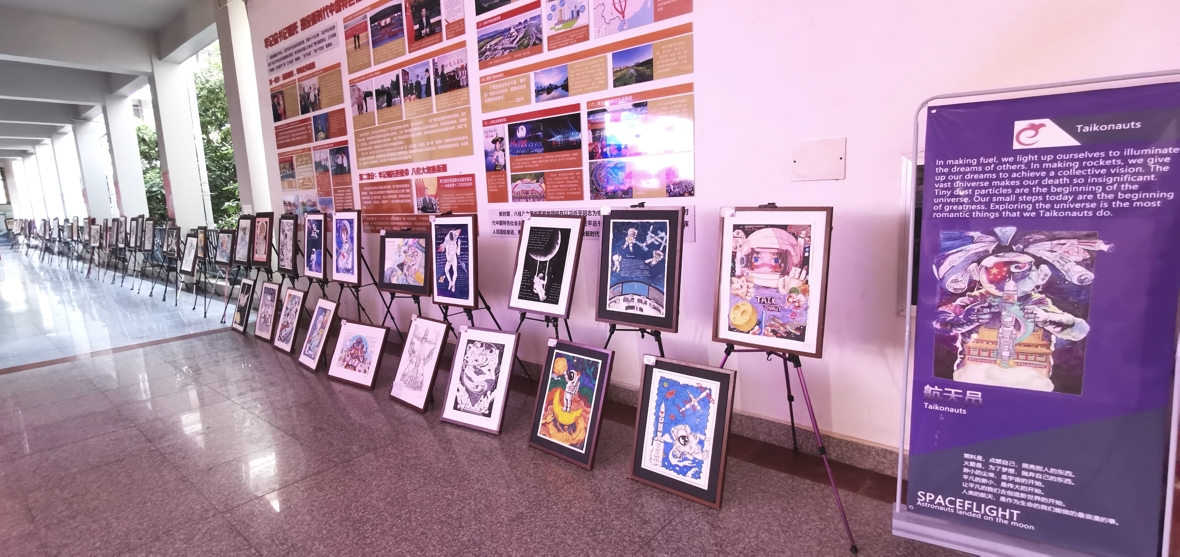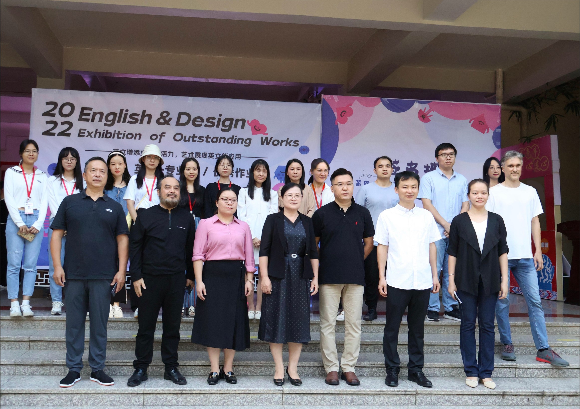 20221026日,我院外语教研室举办的英文增添文化新活力,艺术展现英文新应用暨第英语+专业优秀作”于西校区公德楼一楼隆重开展。学校党委书记张阳,党委书记韦静月,副校长邱杰等校级领导,第四党总支书记刘承初,通识教育学院党支部书记周斌,通识教育学院副院长黄丹,西北师范大学北海附中副校长杨旭东教授,广西教育学会美术专业委员会理事刘阳奎教授,高级室内设计师、收藏家龙文先生,美术学院雕塑专家波波夫·康斯坦丁以及全体外语教研室教师应邀出席了开展仪式。