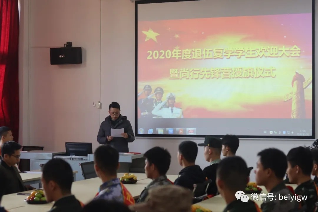 北海艺术设计学院召开2020年度退伍复学学生欢迎大会暨尚行先锋营授旗仪式