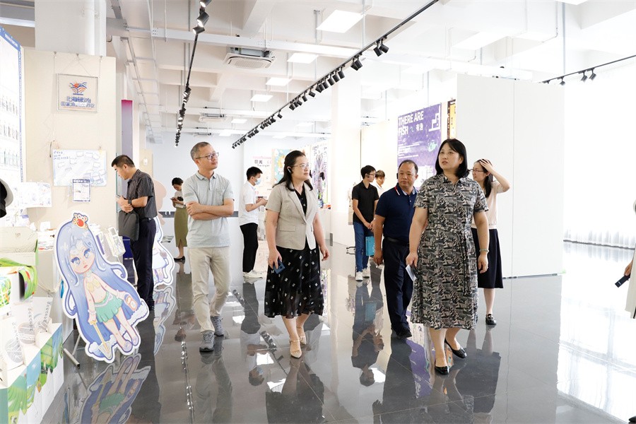 调研组一行先后参观了我校“本科教学综合改革成果展”“校政企行协同育人 服务地方经济发展”展厅和大师工作室、学生作品展等,详细了解学校学科建设、师生作品创作、产学研融合、校企合作、教育教学成果转化和相关版权保护、版权创造和版权登记等方面的情况。