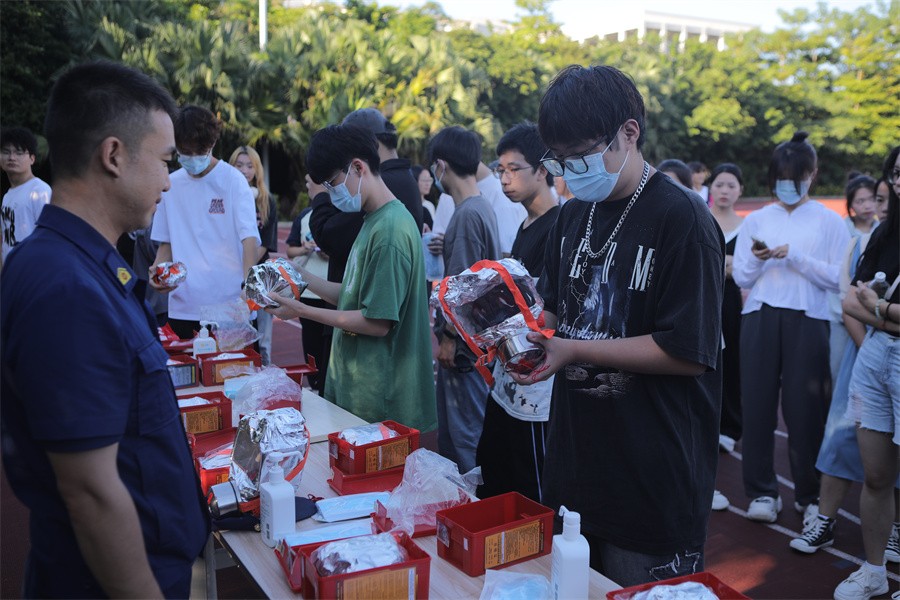演练活动中,2023级学生宿舍长、辅导员、新入职教职工及图书馆、食堂、超市、快递点等消防重点部门单位的教职工约700余人参与消防演练。北海市银海区消防救援大队指战员和学校医务室医生,分别进行了消防常识理论授课和自救互救技能现场演示和技术指导,各学院组织师生到场集中学习消防安全知识,教育引导学生规范日常消防行为习惯。